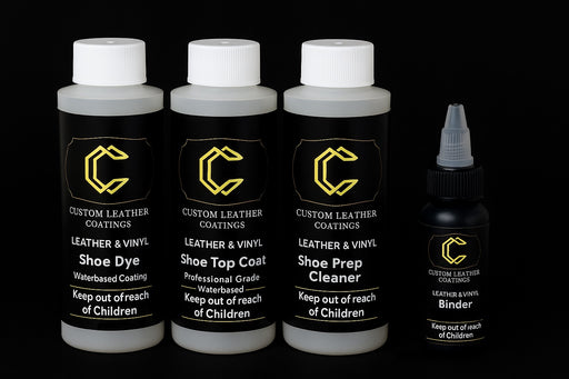 View full details• 4oz. Kit includes: 4oz Shoe Dye, 4oz Shoe Top Coat, 1oz Binder, 4oz Leather Shoe Cleaner , 2 pipettes * Plastic adhesion promotor can also be...